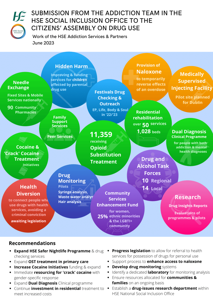 In the HSE National Social Inclusion Office’s submission to the Citizens’ Assembly on Drugs Use, the organisation asked for further expansion of drug checking services based on ‘initial positive feedback’.